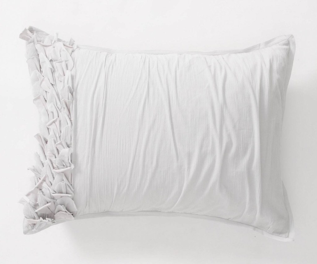 I. Want. This. Gorgeous girly-girly Georgina bedding from Anthropologie. Despite appearances when I’m breezing around downtown in head-to-toe sporty bike gear, I love frills. Ribbons, bows, beads, sequins, embroidery, ruching, pin tucks, appliqués…I heart ’em all. On clothes. On purses. Even on shoes. And especially on bed linens. OK, maybe I could pass on a flashy sequined cushion on which to lay my weary head. But bedecking my bed in layers of ladylike linens makes me giddy with delight.