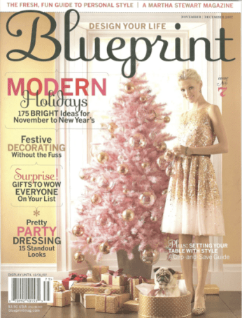 blueprint magazine, blueprint magazine pink christmas tree, blueprint pink christmas tree, martha stewart magazine, pink christmas tree, pink holiday decorating, treeopia pink tree