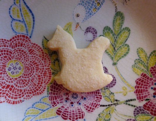 And, boy, does cake and pastry flour ever make a difference! The texture of the shortbread is soft and slightly crumbly. It actually makes the shortbread taste even better! It looks pretty good too – see the delicate, yummy rocking horse above.