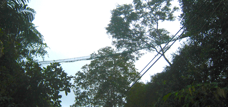 From the lodge, we rode along the main (gravel) road, and on the way to the tiny town of Drake, I noticed a series of monkey bridges in the treetops so the monkeys could cross the road! It really is a jungle out there, just beyond the lodge!